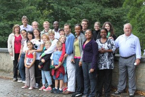 After lunch Jane led us with her guitar in a beautiful and uplifting time of worship choruses. As we sang, the rain clouds lifted and we were able to make our traditional walk down to the lovely River Lesse, stopping on the old stone bridge for our equally traditional photo. Once more the Lord spoke to us through His very green Creation as we formed a happy band of pilgrims from the four corners of the earth, wandering through this little Ardennes village and bearing witness to the unity we have in His love.