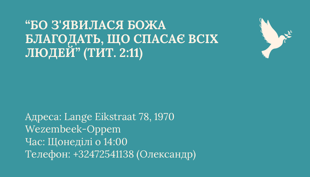 Християнська Церква “Благодать” запрошуємо на богослужiння