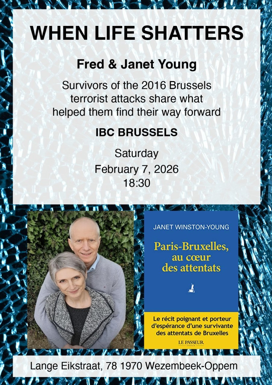Events, International Baptist Church of Brussels Evangelistic evening with Fred and Janet Young Posted by Alex on January 27, 2026 Evangelistic evening with Fred and Janet Young (Survivors of the Zaventem airport bombings) Sat, Feb 07 at 18:30 Share this: Email a link to a friend (Opens in new window) Email Share on Facebook (Opens in new window) Facebook Share on X (Opens in new window) X Share on WhatsApp (Opens in new window) WhatsApp Share on LinkedIn (Opens in new window) LinkedIn Print (Opens in new window) Print